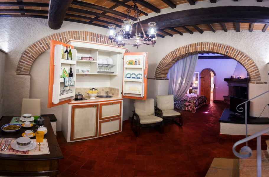 L'appartamento può ospitare fino a 3 persone, coppie con un bambino. E' il nostro nido d'amore ricavato nella vecchia cantina di Tonino, proprietario della villa doveva viveva assieme alla sua famiglia numerosa con ben 14 figli!.
